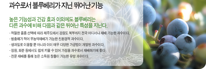 | 최근 뛰어난 건강 기능성을 지닌 웰빙 과수로 알려지기 시작하면서부터 수요가 급증하기 시작한 블루베리는 2005년 7월 기준,