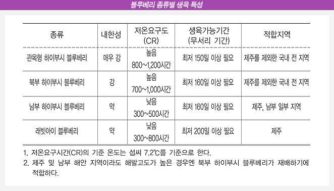 할 사항은 재배지의 동절기 기상 여건이다. 블루베리는