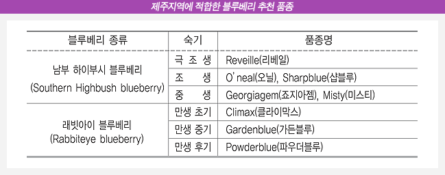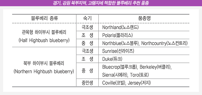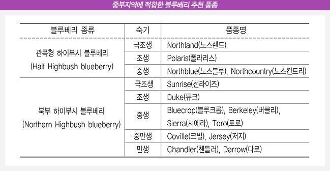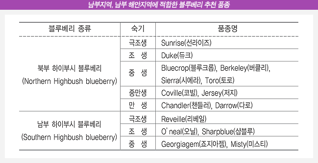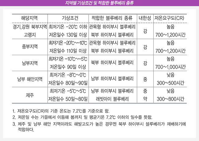 재배하기 적합한 블루베리의 종류가 다르기에 필히 지역별
