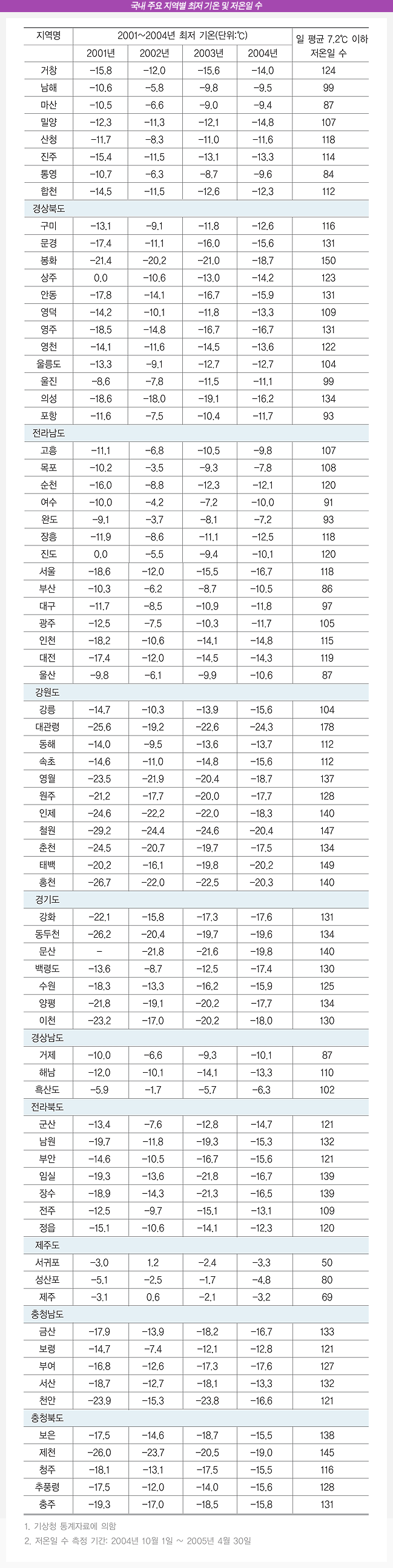 | 이 책자에서 중부지역이란 동절기 최저기온이 -20℃~-10℃