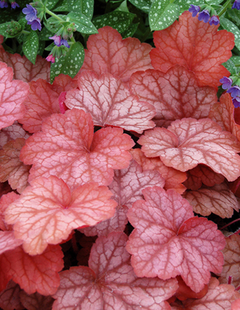 색감이 좋은 고급스러운 잎이 꽃을 능가하는 품위를 지닌 "휴케라"