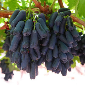 손가락 크기의 기다랗고 큰 열매가 매우 달콤하여 세계적으로 인기 급상승 중인 최신 포도품종으로 열매에 씨가 없고 껍질채 먹을 수 있으며 단단한 과육에서 퍼져 나오는 달콤한 과즙의 맛이 일품!